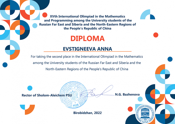 В результате наши математики отлично справились с поставленной задачей и заняли два вторых индивидуальных места (Евстигнеева А., Абдурахмонов Ш.) и одно третье (Шелопугина Е.). Особую благодарность хочется выразить преподавателям кафедры «Прикладная математика», подготовившим участников: Григорьеву Я. Ю. и Григорьевой А. Л.