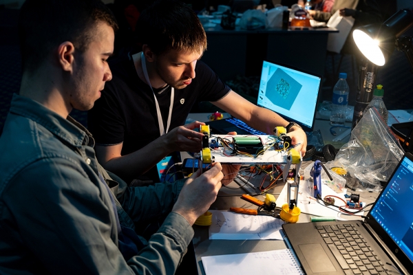 Председатель СКБ «Электроника и робототехника» Алексей Чипизубов (гр. 2МДм-1) рассказал о работе команды на робототехническом хакатоне: «На турнире нам удалось увидеть, на что способны коллективы других вузов, и почерпнуть для себя важные аспекты их взаимодействий. Несмотря на сложность кейса, мы выполнили поставленную перед нами задачу, однако перед самым стартом вышли из строя основные двигательные элементы нашего робота. Мы не отчаиваемся и, уже проанализировав свои ошибки, с нетерпением ждём следующего турнира через год».