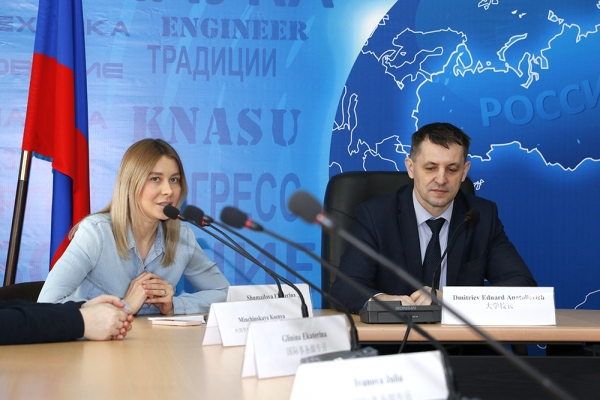 В начале мероприятия ректор университета Э. А. Дмитриев поприветствовал гостей. Эдуард Анатольевич подчеркнул, что сотрудничество с научными и образовательными учреждениями КНР является одним из приоритетных направлений международной деятельности вуза в целом. В настоящий момент в КнАГУ проходят обучение 289 студентов из разных регионов Китая по следующим направлениям подготовки: самолетостроение, машиностроение, электроника, строительство, лингвистика; у вуза более 10 партнёров в КНР, среди которых ведущие университеты, научные центры и школы. «В ближайшее время мы планируем расширить международное сотрудничество и тем самым увеличить количество студентов, которые будут готовиться совместно с институтами и университетами КНР. Я уверен, что сплав образовательной программы КНР и российской образовательной программы нашего университета будет давать хороший синергетический эффект подготовки современных специалистов для экономик наших стран. В заключение хотелось поздравить вас с Новым годом, пожелать успехов, а самое главное, здоровья и процветания, развития наших отношений. С Новым годом вас!»