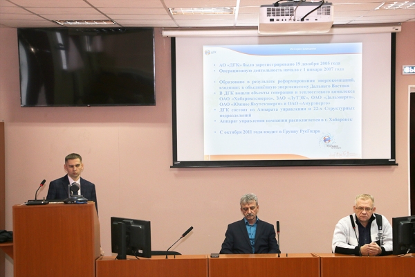 В рамках взаимодействия КнАГУ с работодателями на базе университета состоялась встреча представителей Акционерного общества «Дальневосточная генерирующая компания» со студентами и преподавателями факультетов авиационной и морской техники, энергетики и управления, машиностроения и химических технологий. Целью встречи являлась презентация компании как будущего работодателя и партнера в перспективе развития энергетики Дальнего Востока.