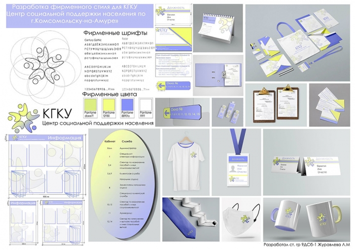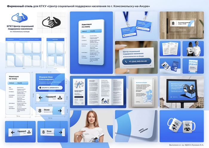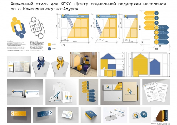 Студенты-дизайнеры КнАГУ в течение всего периода обучения в университете активно занимаются разработкой дизайн-проектов для организаций и учреждений нашего города. Так, в июне 2022 г. на факультет кадастра и строительства с просьбой о создании фирменного стиля учреждения обратилось руководство КГКУ «Центр социальной поддержки населения по г. Комсомольску-на-Амуре». Первоначально была поставлена задача сделать учреждение более узнаваемым и организовать внутреннюю среду, доступную для посетителей учреждения.