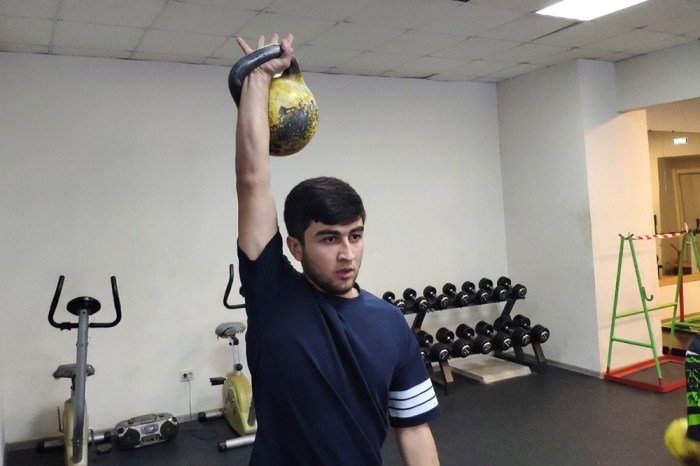 III место – Азимзода Шахдод, при собственном весе 58,6 кг он смог совершить 128 подъёмов гири массой 24 кг, что соответствует – 2677,8 очков по той же таблице Уилкса, которая сравнивает результаты спортсменов с учётом собственного веса.