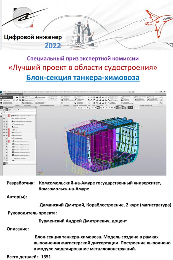- проект «Блок-секция танкера-химовоза» выпускника группы 0КСм-1 Даманского Дмитрия.