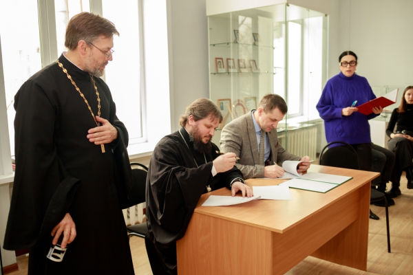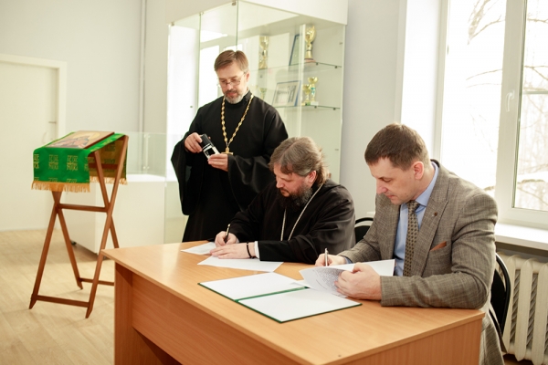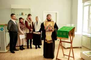 Далее в знак начала этого сотрудничества музей КнАГУ, который стал площадкой для проведения работы по формированию традиционных ценностных ориентаций, в соответствии с традициями освятили. Обряд освящения провёл епископ Амурский и Чегдомынский Николай, акт которого сопровождался молитвенными песнопениями в исполнении хора Кафедрального собора св. пророка Божия Илии, регент хора – Елена Николаевна Кравченко.