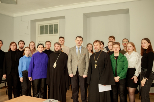 Затем модератор встречи проректор по воспитательной работе и работе с молодёжью Т. Е. Наливайко рассказала о задачах Центра духовно-нравственного просвещения и воспитания: содействие духовно-нравственному просвещению и воспитанию молодёжи, создание возможностей для встреч и обсуждения с современными героями страны, психологами и священнослужителями вопросов духовности и нравственности, развитие и осуществление волонтёрской деятельности, краеведческих поездок и экскурсий.