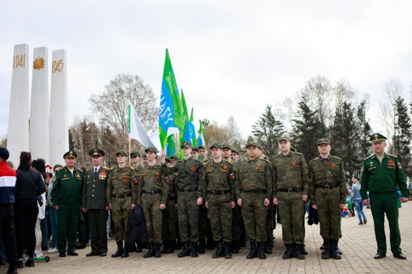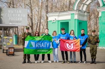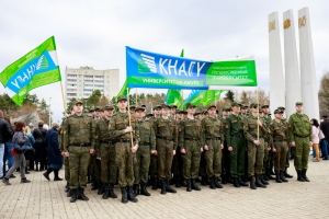 Празднование Дня Победы продолжилось культурно-массовыми и спортивными мероприятиями. Участие наших студентов в митинге организовано отделом организации воспитательной работы и Военным учебным центром КнАГУ.