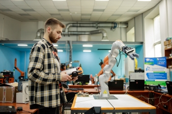 Маркел: В данный момент работаю над идентификацией систем управления электрическим приводом промышленного робота. Дело в том, что производитель промышленных роботов, как правило, не даёт подробных технических характеристик действующих приводов робота, необходимых для формирования имитационных моделей робототехнических систем. В связи с этим мы проводим экспериментальные исследования, чтобы идентифицировать имеющийся электрический привод робота, что позволит в дальнейшем создавать виртуальные модели промышленных роботов с целью апробации различных алгоритмов управления. Такое исследование поможет сделать работу с роботом максимально эффективной и безопасной.