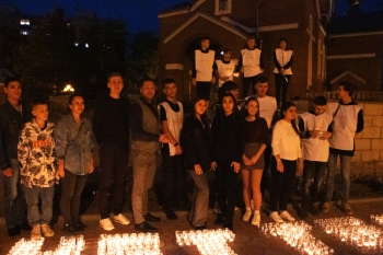 Затем на территории собора Казанской иконы Божией Матери состоялась молодёжная акция «Нет террору». На мероприятии присутствовали представители администрации города, русской православной церкви, общественных и молодёжных организаций, студенты, школьники, молодёжь города. В рамках акции для всех присутствующих батюшка провёл молитву в память о погибших. Далее студенты Комсомольского-на-Амуре государственного университета совместно с другими участниками молодёжной акции сложили фразу «Нет террору!» из поминальных свечей в память о тех, кто погиб от рук террористов. Мероприятие нашло отклик в каждом из присутствующих студентов, молодые люди выразили готовность предупреждать любые проявления экстремизма и терроризма.