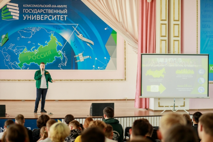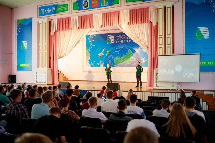 В рамках марафона «Знание» первокурсники КнАГУ узнали о возможностях и перспективах внеучебной деятельности, которые даёт университет студентам, а также познакомились с главными федеральными молодёжными проектами и площадками, на которых молодёжь может реализовывать свои идеи и выдвигать инициативы.