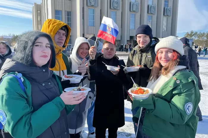 В День народного единства 4 ноября 2023 года курсанты и преподаватели Военного учебного центра, студенты – члены патриотических общественных объединений, преподаватели университета, проректор по воспитательной работе и работе с молодежью Т.Е. Наливайко, сотрудники отдела организации воспитательной работы приняли участие в мероприятии «#МЫВМЕСТЕ», посвящённом Дню воинской славы в поддержку российских военнослужащих, мобилизованных граждан и их семей.