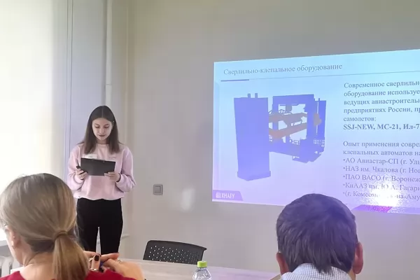 - Алина Акимова, группа 2ТС-1, с докладом на тему «Анализ отечественного и импортного оборудования для автоматической клёпки» (научный руководитель – доктор технических наук, заведующий кафедрой «Авиастроение» С. Б. Марьин).