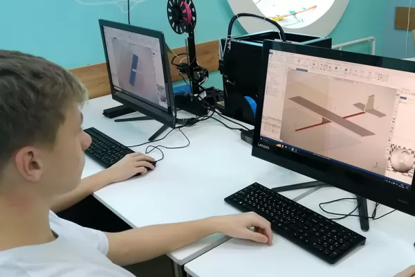 Далее школьники изучили техники обработки модельных материалов и изготовили простейшие свободно летающие модели самолётов. При изготовлении были применены чертежи, полученные по 3D-моделям, и распечатаны на 3D-принтере отдельные детали.