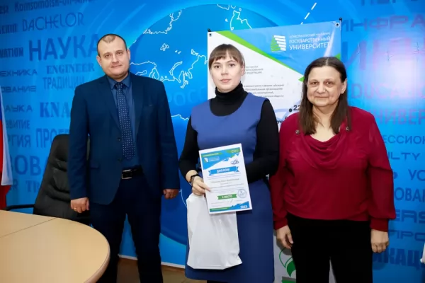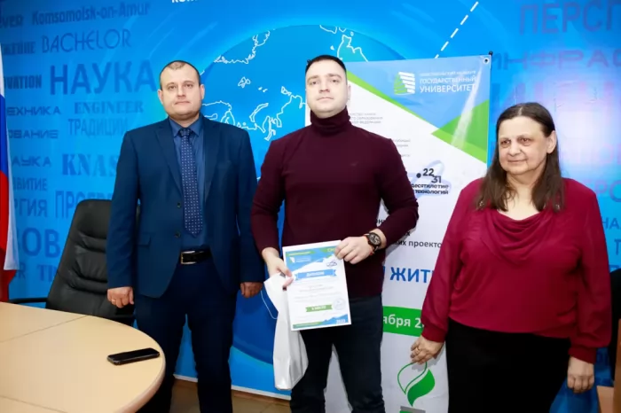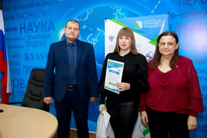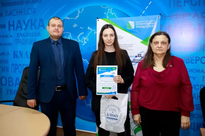 С результатами конкурса можно ознакомиться на сайте. Торжественное награждение победителей конкурса провели проректор по учебной работе КнАГУ Я. Ю. Григорьев и доцент кафедры «Кадастры и техносферная безопасность» Г. Е. Никифорова.