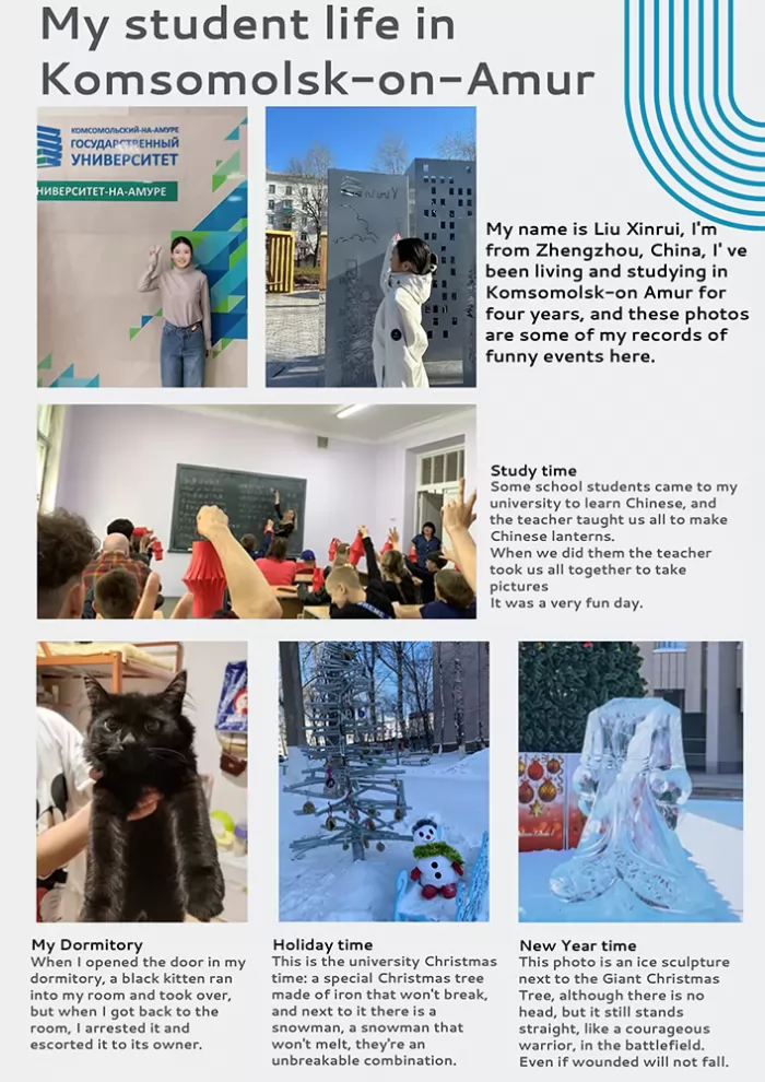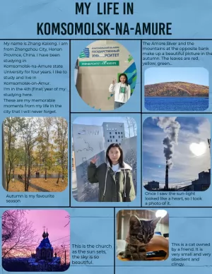 II место в секции «Коллаж» – Чжан Кайсин, гр. 1БЛб-1 (руководитель – Малышева Наталья Васильевна, кандидат филологических наук, доцент кафедры лингвистики и межкультурной коммуникации КнАГУ);