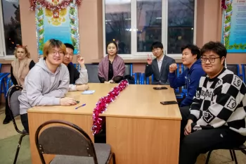 Программа вечера началась с новогоднего квиза, в котором участвовало пять смешанных студенческих команд: «34 размер», «Дед и олени», «Демонтажная бригада», «Нули с Ибяса», «Фантастические твари», «Семга в шубе».
