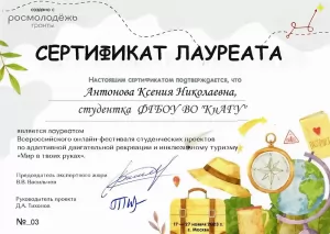 Всероссийский онлайн-фестиваль студенческих проектов по адаптивной двигательной рекреации и инклюзивному туризму «Мир в твоих руках» проводился с 1 октября по 30 ноября 2023 года. Во Всероссийском фестивале приняли участие социальные проекты по адаптивной двигательной рекреации, реализации туристического продукта в инклюзивной среде и др.