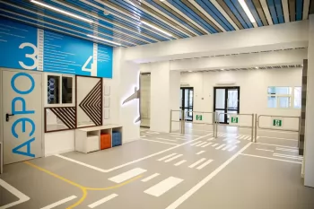 «Мы отталкивались в проекте от авиационной тематики, выбрана была соответствующая цветовая гамма, добавлен такой атрибут, как взлётная полоса на полу. Итог этой работы шокировал, очень приятно видеть свои глазами, как здорово воплощён проект», – поделилась своими впечатлениями автор проекта Анна Семакина.