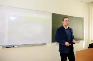 Спикером встречи стал заведующий кафедрой информационной безопасности и автоматизированных систем факультета компьютерных технологий КнАГУ Андрей Александрович Обласов.