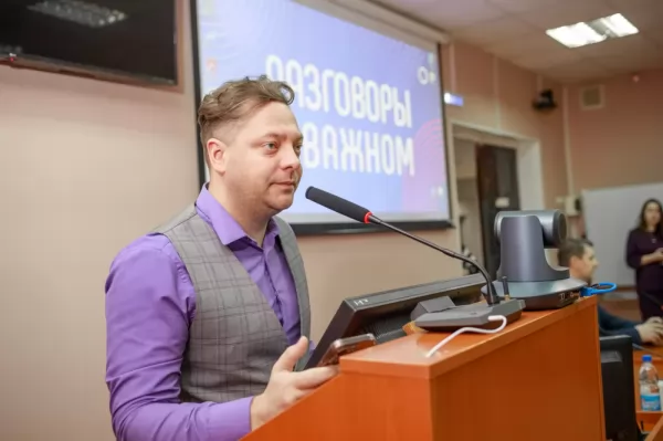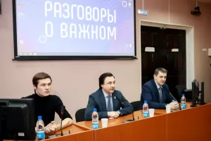 В рамках проекта «Разговоры о важном» 5 марта 2024 года в КнАГУ прошла встреча студенческой молодёжи университета с главой Комсомольска-на-Амуре Александром Викторовичем Жорником. На встрече присутствовали ректор КнАГУ Эдуард Анатольевич Дмитриев, представители администрации города, также приняли участие органы студенческого самоуправления во главе с председателем Объединённого совета обучающихся КнАГУ Сергеем Попковым.