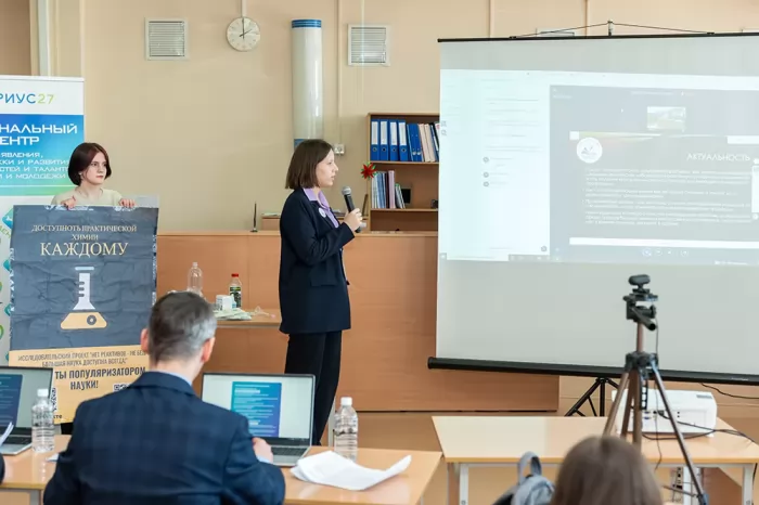 В региональном конкурсе приняли участие 73 учащихся 7-11-х классов образовательных организаций общего и дополнительного образования Хабаровского края. Из них 41 участник вышел на заключительный трек регионального конкурса. В этом году защита проектов прошла на двух площадках с использованием телемоста в г. Хабаровске, КГАНОУ «Краевой центр образования», и в г. Комсомольске-на-Амуре, ФГБОУ ВО «КнАГУ». Докладчики и эксперты одной секции находились на обеих площадках. Получается интересный очно-дистанционный формат защиты научно-исследовательских и проектных работ.
