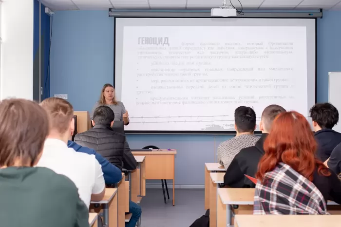 В рамках кинопоказа студентам продемонстрировали фильм «Без срока давности», подготовленный ко Дню единых действий в память о геноциде советского народа нацистами и их пособниками. Фильм подготовлен на основе хроник, в том числе трофейных, из Российского государственного архива кино- и фотодокументов и Госфильмофонда. В фильме приводятся фото- и видеоподтверждения издевательств нацистов над мирными советскими гражданами в оккупированных населённых пунктах.