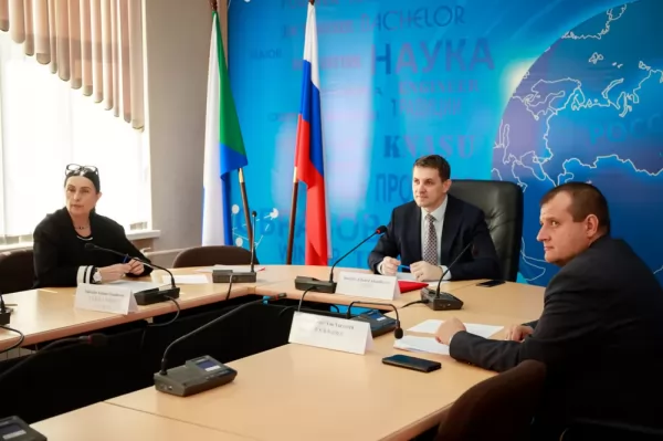 На деловой встрече присутствовали: ректор университета Э. А. Дмитриев, проректор по воспитательной работе и работе с молодёжью Т. Е. Наливайко, проректор по учебной работе Я. Ю. Григорьев; начальник управления международной деятельности Е. С. Шумайлова.