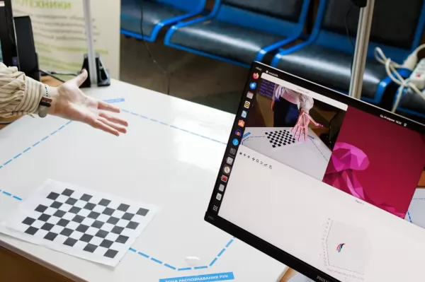 На площадке СКБ «Промышленная робототехника» (руководитель – С. И. Сухоруков) была представлена часть проекта «Система управления пятипальцевым захватом промышленного робота», который ранее демонстрировался на выставке инновационных разработок VI Общероссийского конгресса инженеров «Наука – Инженер – Промышленность». В рамках данного проекта был осуществлён комплекс работы на базе коллаборативного робота и самостоятельно разработанной интеллектуальной системы управления. Система осуществляет распознавание руки человека в пространстве, определение её координат, факта сжатия/разжатия кисти. Далее распознанные данные преобразуются в команды для робота, в соответствии с которыми он перемещает в пространстве захват и повторяет действия человека.