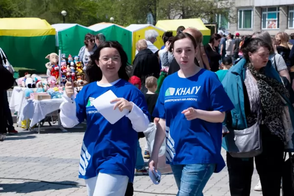 На городской выставке-ярмарке «Парад профессий» на площади Юности жители города смогли познакомиться с площадкой КнАГУ и узнать самую актуальную информацию по поступлению в наш университет. В ходе мероприятия факультеты университета представили свои научные проекты и технологичные разработки, провели мастер-классы, которые вызвали живой интерес у посетителей ярмарки, особенно у школьников города. Всё было очень колоритно, ярко, живо и весело. В ходе торжественного открытия ярмарки студентам КнАГУ были вручены благодарности от администрации города за участие в профориентационных мероприятиях.