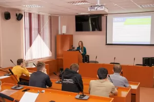 На защите работ присутствовали преподаватели и студенты КнАГУ, а также ведущие специалисты проектных организаций г. Комсомольска-на-Амуре: ООО «ПМ Графика», ООО «Техстандарт», ООО «Тандем». Производственники имели возможность задать вопросы участникам конкурса и приняли участие в процедуре распределения призовых мест.