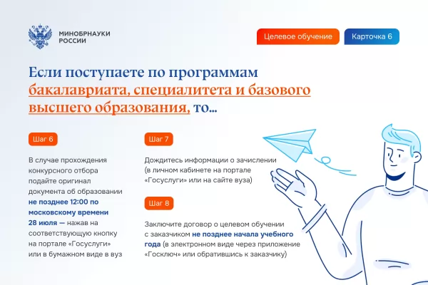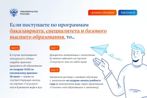 - Шаг 6. Заключите договор о целевом обучении с заказчиком до начала учебного года (для заключения договора необходимо обратиться к заказчику).