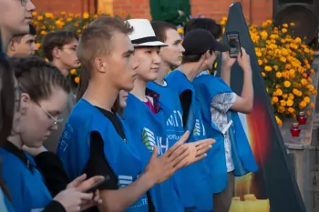 Затем на территории собора Казанской иконы Божией Матери состоялась молодёжная акция «Нет террору». На мероприятии присутствовали представители администрации города, русской православной церкви, общественных и молодёжных организаций, студенты, школьники, молодёжь города. В рамках акции для всех присутствующих батюшка провёл молитву в память о погибших. Далее студенты университета и активисты патриотического клуба КнАГУ «Я горжусь» совместно с другими участниками молодёжной акции сложили фразу «Нет террору!» из поминальных свечей в память о тех, кто погиб от рук террористов. Мероприятие нашло отклик в каждом из присутствующих студентов, молодые люди выразили готовность предупреждать любые проявления экстремизма и терроризма.