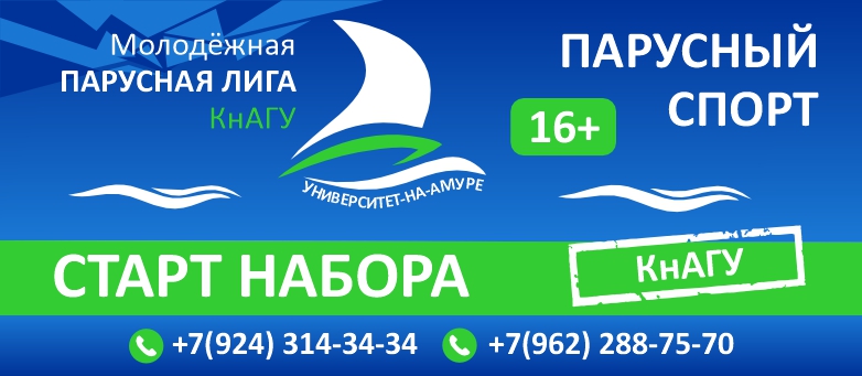 Молодёжная парусная лига Комсомольской-на-Амуре Федерации парусного спорта приглашает студентов от 16 лет и старше бесплатно освоить азы парусного спорта.