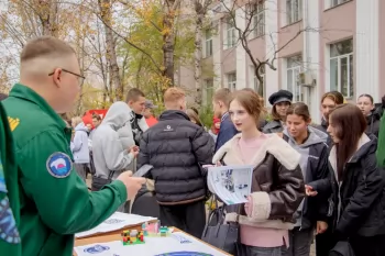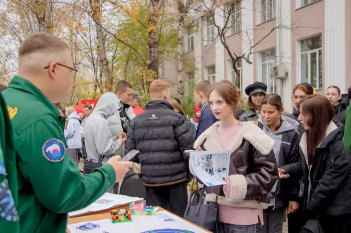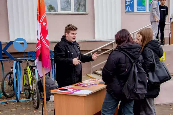 Активисты из студенческого патриотического клуба «Я горжусь» и волонтёры штаба КнАГУ «#МЫВМЕСТЕ» рассказывали молодёжи о работе по патриотическому воспитанию и по организации помощи в зону СВО (руководитель Михаил Климанов).