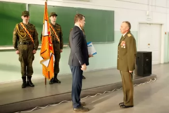 С поздравлением к собравшимся преподавателям, сотрудникам и курсантам Военного учебного центра обратился ректор университета Э. А. Дмитриев: «Уважаемые преподаватели Военного учебного центра, уважаемые курсанты, в этот праздничный день и довольно непростое время хотелось бы пожелать вам мирного неба над головой и, самое главное, успехов в учёбе. Вы – защитники нашей страны, соответственно, ваш успех очень важен для нашей Родины. С праздником!»