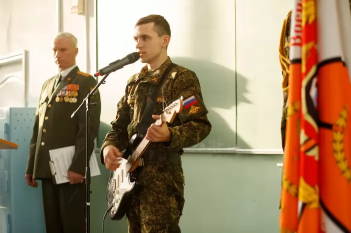 В завершение праздничного мероприятия перед собравшимися выступили студенты университета – участники творческого коллектива «Школа игры на гитаре», которые исполнили композицию «Артиллерия – Бог войны» (К. Потылицын), затем Илья Блинов под гитару спел песню «Флаг моего государства» (Д. Майданов).