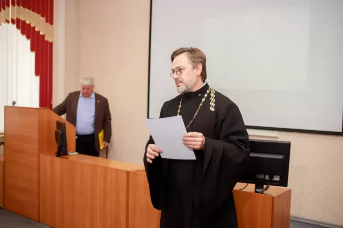 Гостями встречи стали ректор КнАГУ Э. А. Дмитриев, епископ Амурский и Чегдомынский Николай, иеромонах Иннокентий, клирик Собора Казанской иконы Божьей Матери, студенты нашего университета и учащиеся школы № 51.