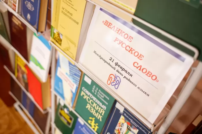 К Международному дню родного языка научно-техническая библиотека подготовила книжную выставку «Великое русское слово». Материалы выставки включают издания по вопросам современного языкознания, стилистике, лингвистике, орфографии, истории и современному состоянию русского языка.