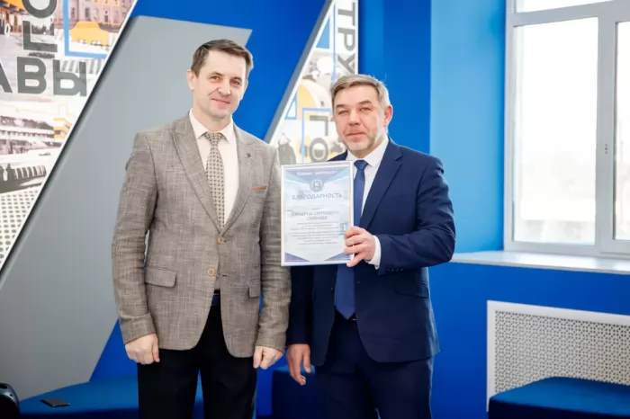 Комсомольский-на-Амуре государственный университет выражает благодарность директору производственного центра филиала ПАО «Яковлев» «Региональные самолёты» Андрею Сергеевичу Сойнову и его коллегам за личный вклад в реализацию совместных программ, направленных на подготовку инженерных кадров для экономики города, личное участие в развитии университета и преданное отношение к своему делу.