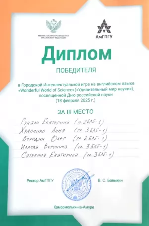 Екатерина Гукало: «В АмГПГУ прошло мероприятие “Wonderful World of Science”, где мне довелось принять участие. Викторина была интересной и увлекательной. А главной её особенностью был тот язык, на котором она проводилась, – английский! Это никак не усложнило процесс, ведь организаторы постарались всё доходчиво объяснить. Думаю, что человек с любым уровнем языка мог бы справиться, если имеются знания в сфере науки и техники, на чём и был главный акцент квиза».