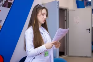 Далее студенты и преподаватели приняли участие в станциях, посвящённых физическому и ментальному здоровью. Гости нашего университета – студенты Комсомольского-на-Амуре филиала Хабаровского государственного медицинского колледжа им. Г. С. Макарова – предложили участникам акции проверить свои знания на станции «Здоровые цифры здорового человека». Здесь студенты и преподаватели получили исчерпывающую информацию о компонентах здорового образа жизни, выраженных в цифрах, которыми рекомендуется руководствоваться в повседневной жизни для поддержания и сохранения здоровья. Были предложены такие аспекты, как артериальное давление, суточная норма употребления соли, физическая активность и др.