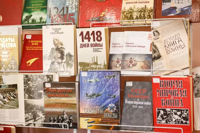 На выставке представлены издания об истории Великой Отечественной войны и её ключевых битвах, книги о выдающихся полководцах и рядовых, тех, кто в жестоких боях отстоял свободу и независимость нашего государства, кто трудился в тылу и поднимал страну из руин.