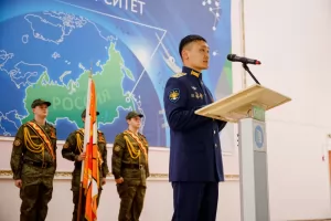 С поздравительной речью также выступил почётный гость, военнослужащий Комсомольского-на-Амуре гарнизона, участник СВО, майор Алексей Геннадьевич Э.: «Уважаемый ректор, товарищи офицеры, наши почётные гости, я рад находиться здесь, в стенах Комсомольского-на-Амуре государственного университета в торжественной обстановке, посвящённой 80-летию окончания Великой Отечественной войны. В преддверии праздника я хочу выразить огромную благодарность всему коллективу университета за их большой вклад в научную и общественную деятельность, за воспитание и обучение наших курсантов. Ваша неоценимая работа даёт право нашему университету называться одним из лучших университетов на Дальнем Востоке. Товарищи курсанты, я уверен, что благодаря полученным вами знаниям, навыкам, умениям вы сможете выполнить любые поставленные задачи в наших высокотехнологичных комплексах, военно-промышленных комплексах, современных перерабатывающих предприятиях. Желаю вам прежде всего стать профессионалами своего дела, принять все знания, которые вам вкладывают в университете, здоровья, активности, большого желания, любить свою страну, помнить о её традициях, а мы обещаем вам в этом сопутствовать».