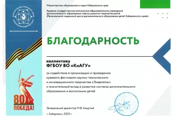 17-19 мая в рамках 8-го промышленного форума «ТЕХНО-ЛЕТО-2025» на территории арены Ерофей (г. Хабаровск) прошли краевой фестиваль научно-технического и инновационного творчества «Энергетик» и краевой профориентационный фестиваль технического творчества «Горный». В мероприятии в очном и дистанционном формате приняли участие более 2000 школьников и студентов из Хабаровска, Комсомольска-на-Амуре, Амурского, Ванинского, Охотского, Советско-Гаванского, Ульчского, Хабаровского районов. Также участие в мероприятии приняли студенты факультета энергетики и управления и факультета авиационной и морской техники КнАГУ. Организатором фестивалей традиционно выступает Региональный модельный центр Хабаровского края. Целью фестивалей является создание условий для развития технического мышления и инженерно-конструкторских способностей в области научно-технического творчества и исследовательской деятельности детей.