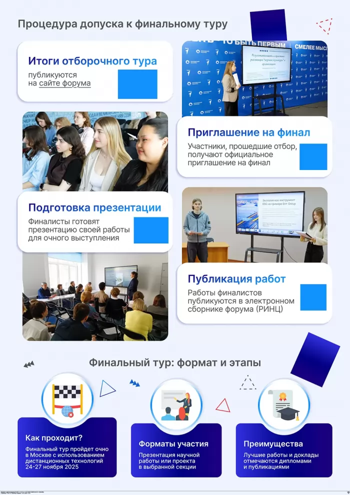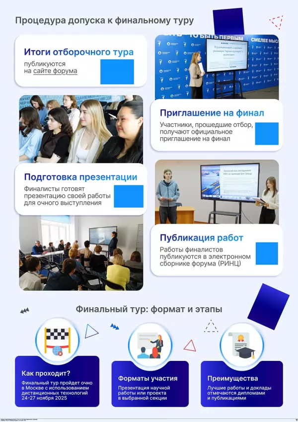 В рамках текущего Форума планируется проведение более 30-ти тематических секций, включая специализированную секцию на английском языке для иностранных участников. Смешанный формат проведения обеспечивает возможность участия как очно в Москве, так и дистанционно, гарантируя максимальную доступность мероприятия для участников из различных регионов.