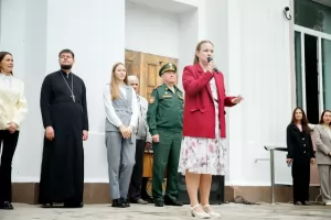 Также свои пожелания передали отец Александр, клирик Собора Казанской иконы Божией матери, и Сергей Иванович Карпов, начальник военного учебного центра КнАГУ, кандидат исторических наук, доцент, полковник запаса. Он рассказал о возможностях получения военной подготовки в университете, отметив, что программа подготовки офицеров и сержантов запаса – это путь к дисциплине, ответственности и служению Родине.