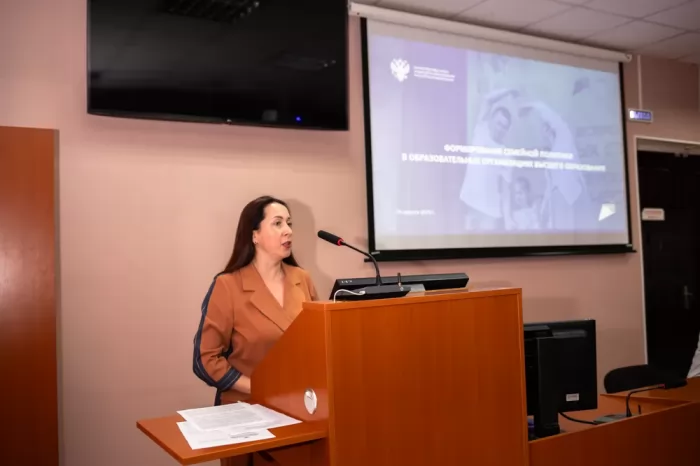 Открыла мероприятие начальник отдела воспитательной работы Юлия Николаевна Осинцева, поприветствовав присутствующих и сообщив повестку встречи. Первая часть Совета была посвящена молодым студенческим семьям, а именно поддержке института семьи на всех уровнях – от федерального до местного.
