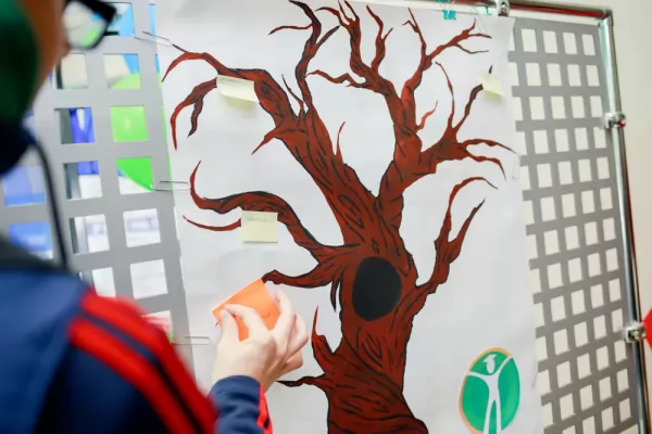 В ходе мероприятия студенты участвовали в различных активностях: делились на группы по признакам внешности, знакомились друг с другом, учились выстраиваться в геометрические фигуры и буквы – всё это способствовало укреплению коммуникации и снятию психологического напряжения. Завершилась акция созданием пожеланий для себя и окружающих на дереве добрых слов. Также участники делились своим настроением, и каждый получил пожелание-аффирмацию – фразу, способную настроить на успех и благополучие.