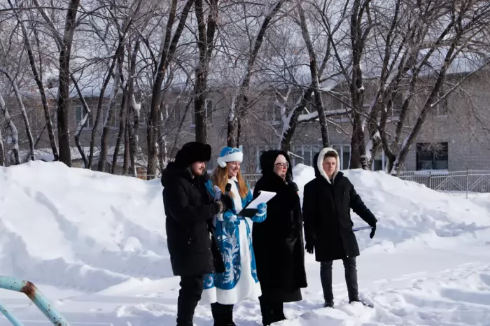 Праздник открылся торжественным построением и приветственными словами ведущих — Василисы и Добрыни, облачённых в русские народные костюмы. Они настроили всех участников на весёлые состязания, напомнив о старинных традициях зимних гуляний.