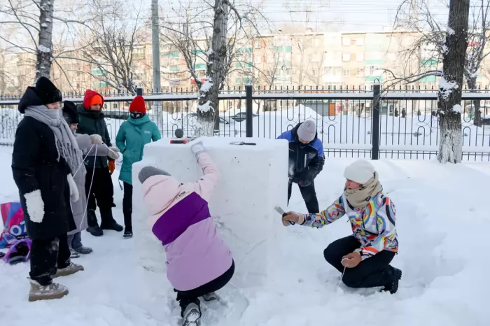 С самого утра в этот день на площадке царила оживлённая атмосфера. Звучали шутки, смех, команды дружно вооружались инструментами — лопатами, шпателями, тёрками — и приступали к работе: все без исключения погрузились в творческий процесс с энтузиазмом. Снег послушно принимал нужные формы, а морозный воздух лишь добавлял бодрости.
