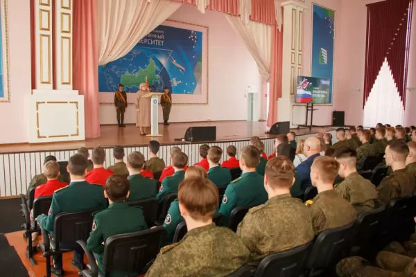 На торжественном собрании и. о. ректора университета Ирина Вячеславовна Цевелева высказала надежды о том, что будущие выпускники станут гордостью нашего университета, и своими достижениями прославят не только малую родину, но и нашу страну. Начальник военного учебного центра полковник запаса Сергей Иванович Карпов подчеркнул важность многолетней традиции празднования предстоящего Дня защитника Отечества и рассказал об истории праздника, а также об изначальном смысле этого Дня: почитания и любви к своей Родине и готовности всегда защитить свою отчизну.